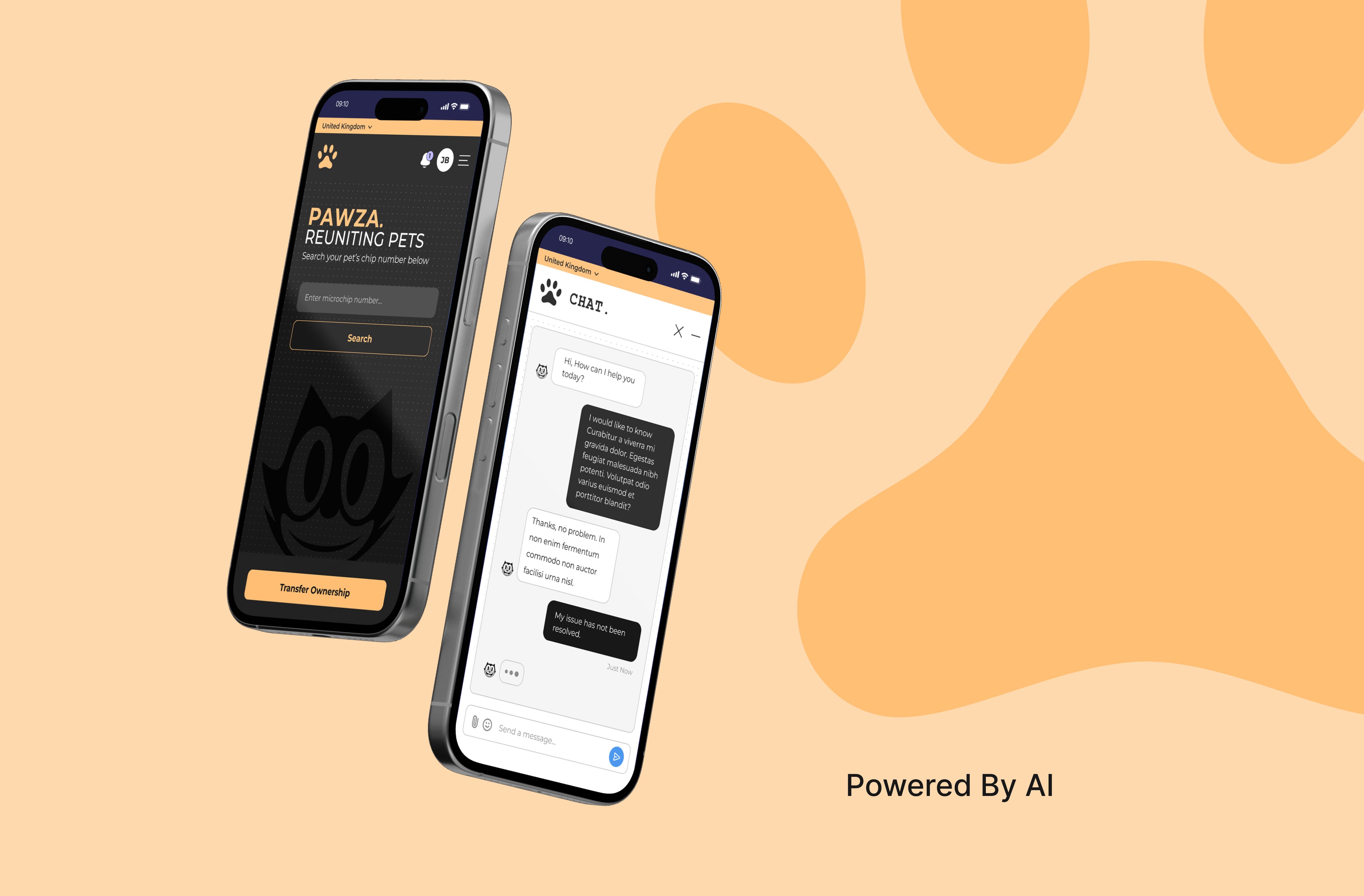 Pawza is a global, AI-powered platform for managing pet microchip data, offering self-service solutions for ownership transfers, dispute resolutions, and more. I led the UX/UI design to create an intuitive, futuristic interface that adapts to user needs, blending advanced AI with a clean, accessible design.