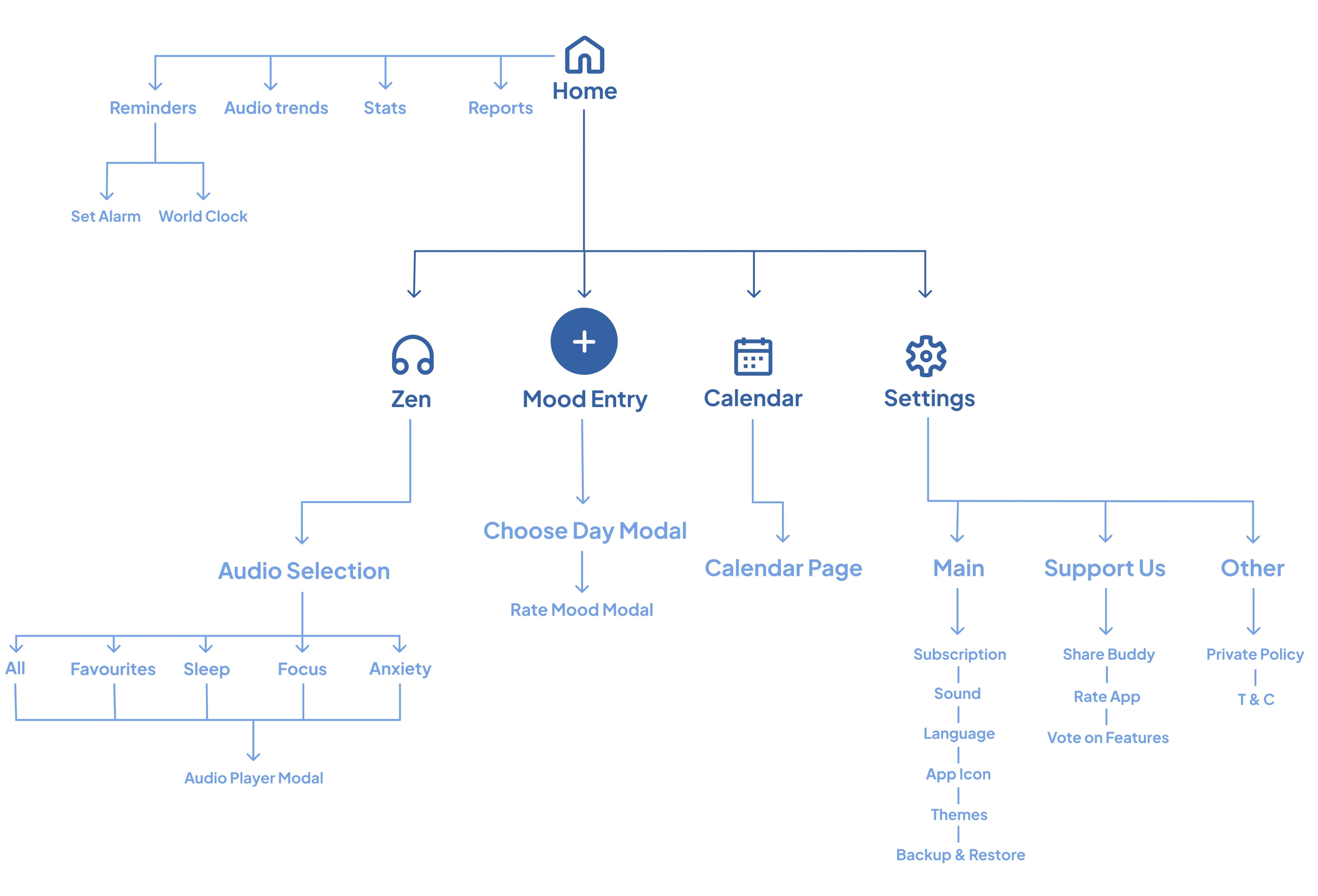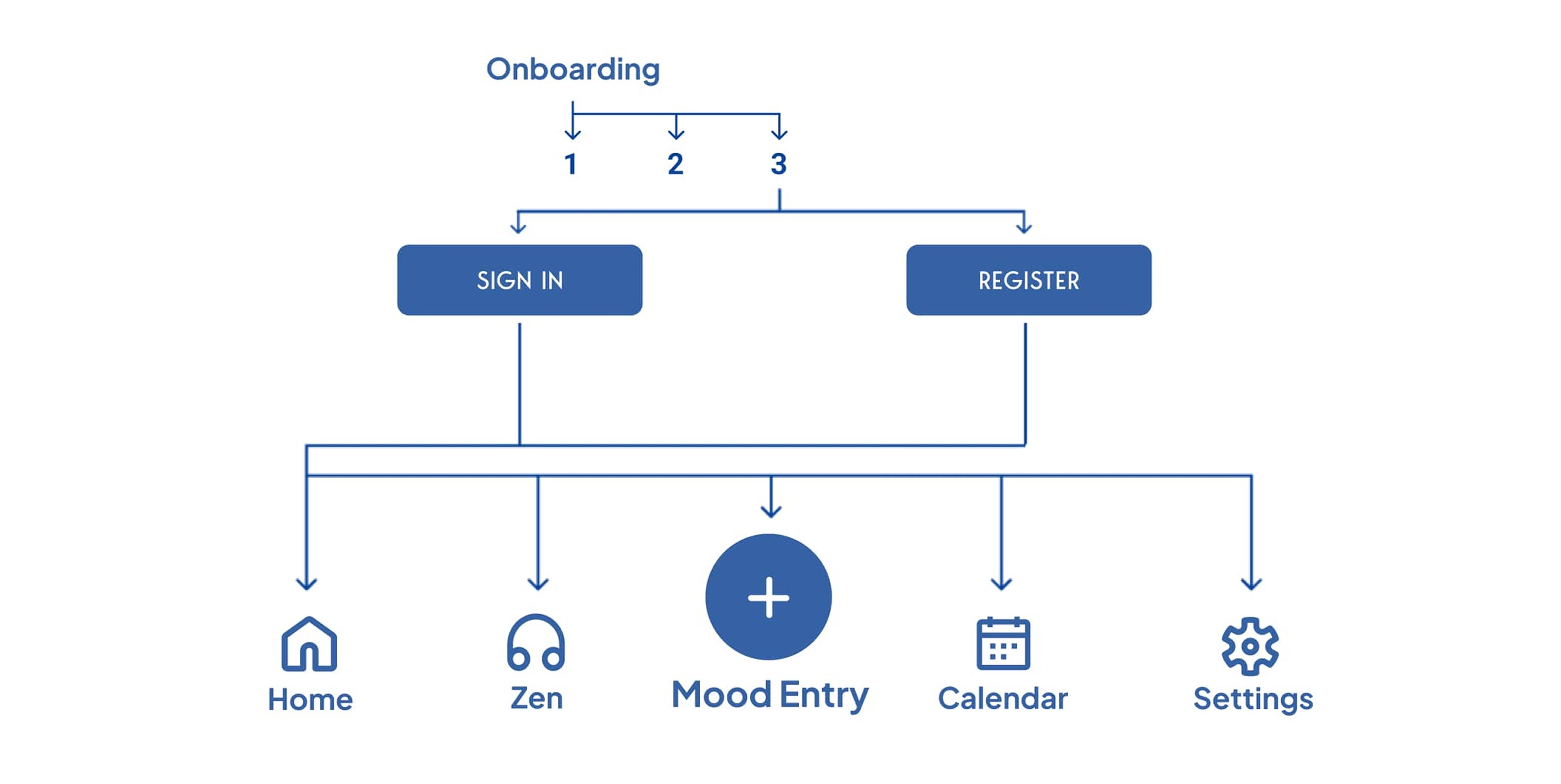I proposed a design with easy accessibility to all important features & pages (Home, Zen, + button, Calendar, Settings).