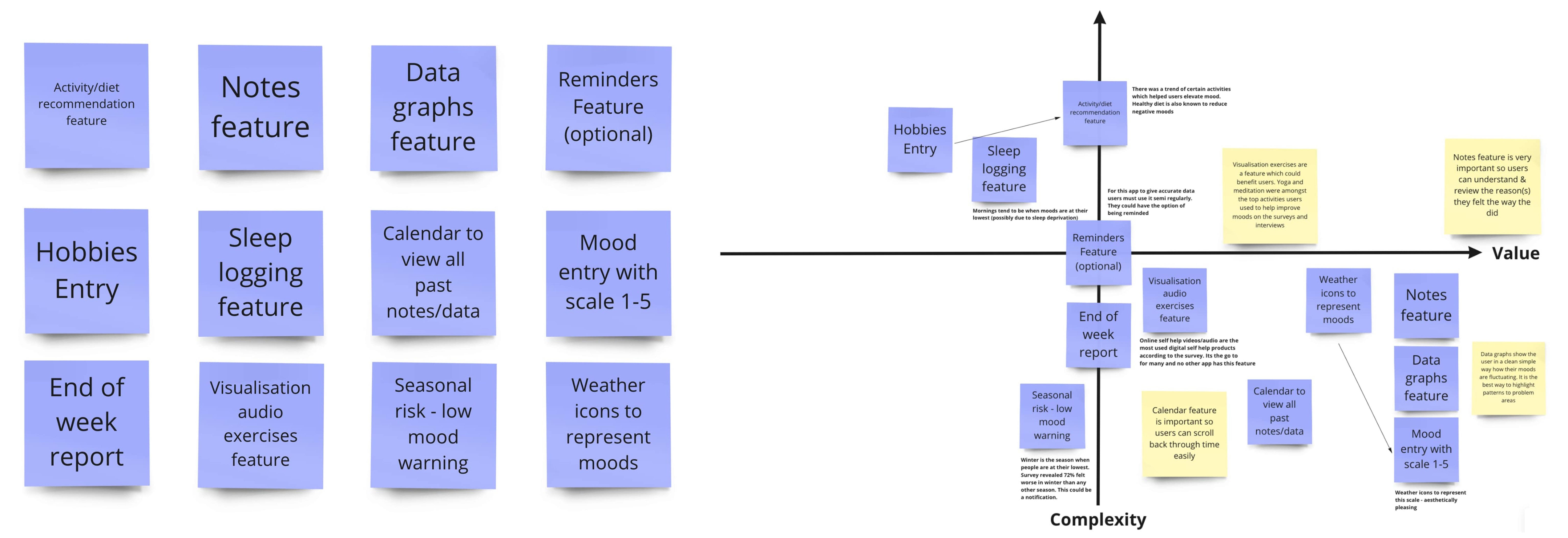 After going through all the data, I produced 12 top features for potential solutions and prioritised them according to risk & value.