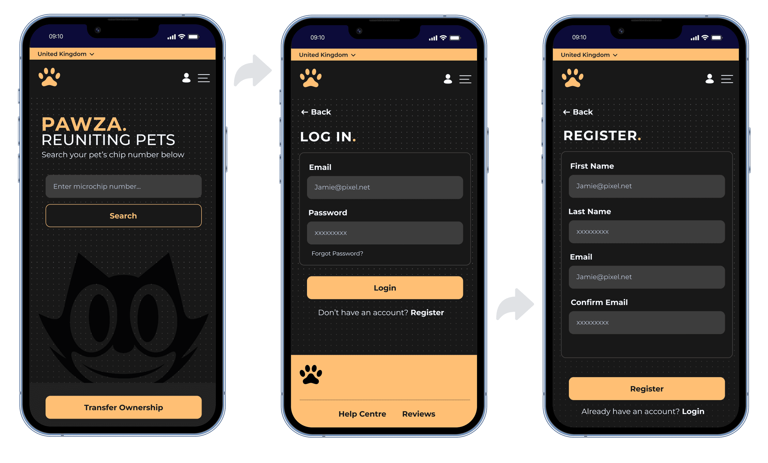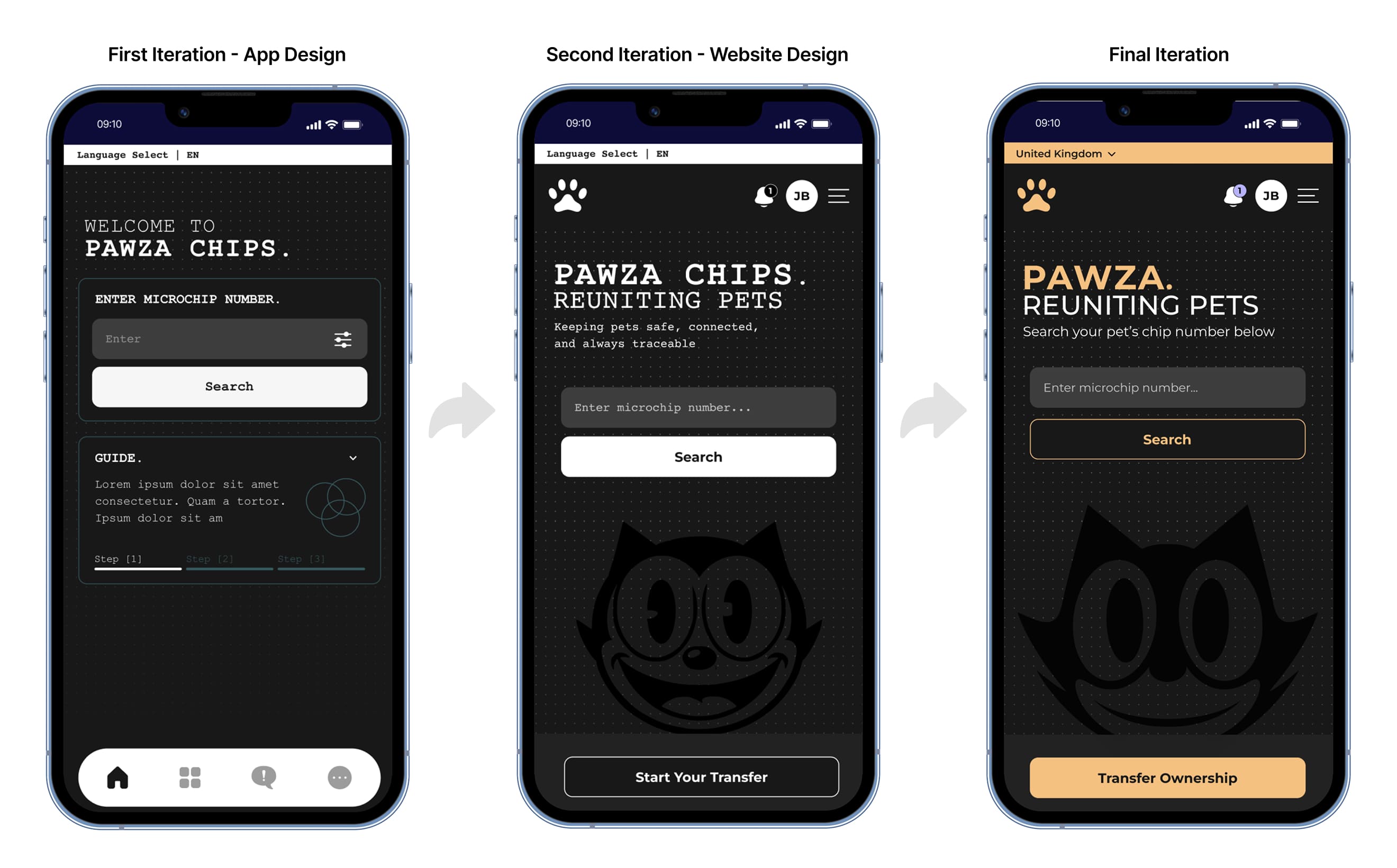 Managing pet microchip data is often frustrating — especially when users face disputes, missing or unregistered chips, or complex ownership transfers. Pawza aimed to solve this without any human support, relying entirely on an AI-driven system. This presented significant design constraints and high-stakes challenges across both UX and visual design.