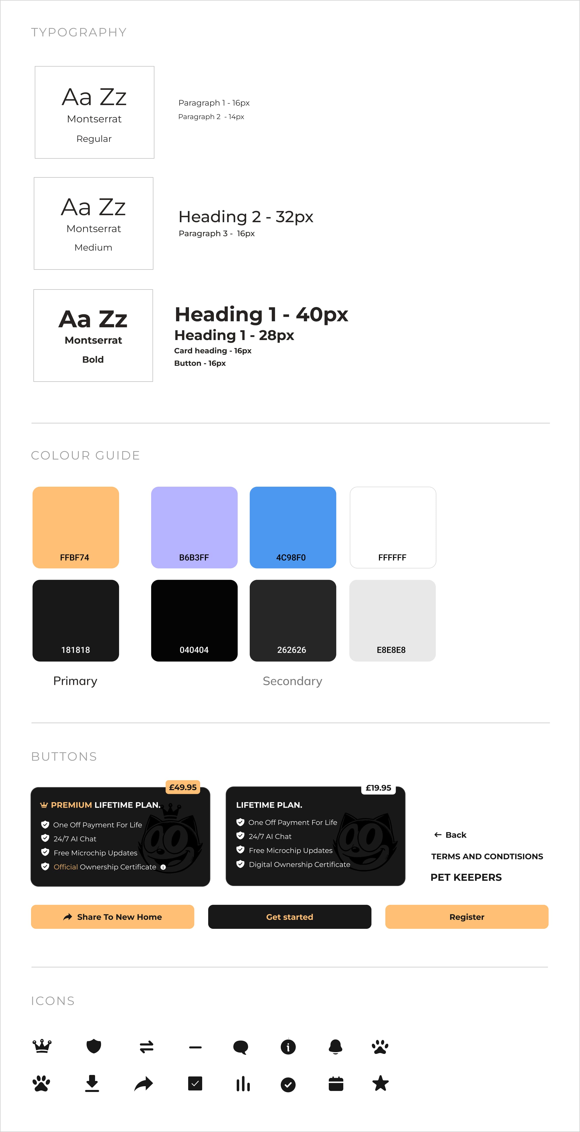 This is a style guide for Pawza mobile site. This style guide contains colours, typography, buttons, input fields and icons: