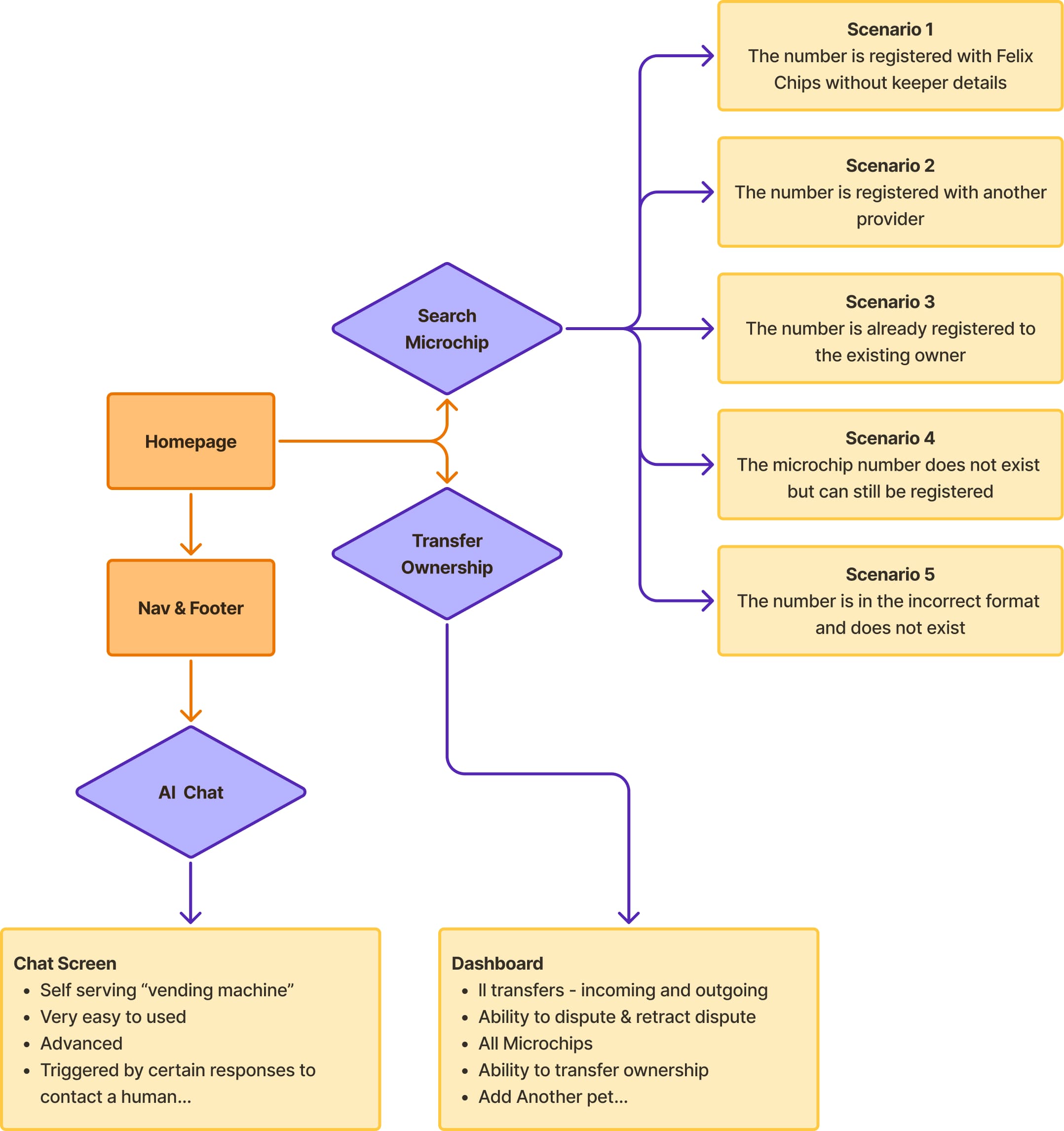 Complex Use Cases: Handling edge cases like ownership transfers (with or without consent), disputes, missing or unregistered chips, and clearly differentiating logged-in vs logged-out experiences.
