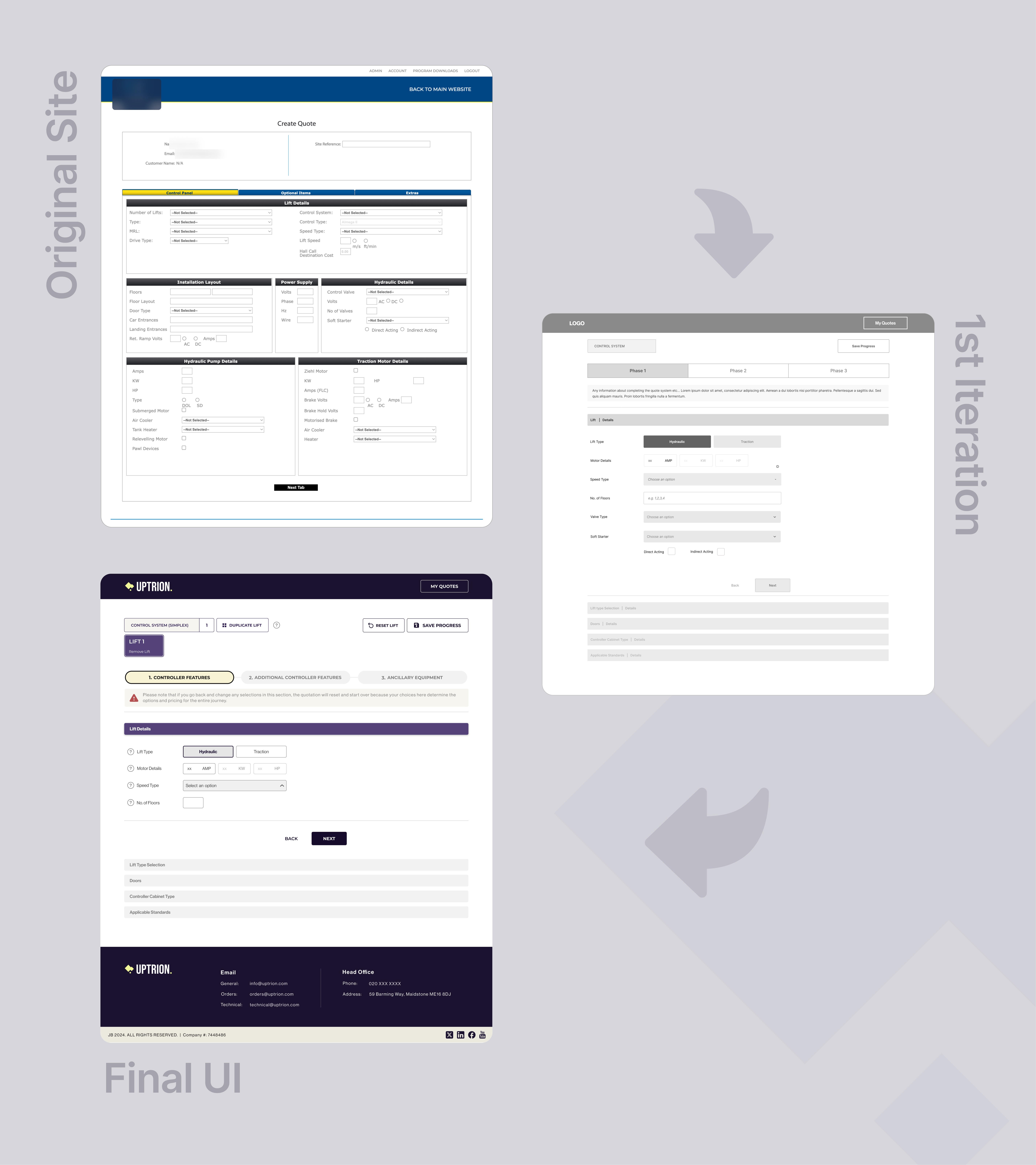 Uptrion specialises in designing and manufacturing electrical control systems, particularly for elevators. Their website, especially the quotation journey had become overly technical and confusing, causing users to abandon the process and call instead. I led a full UX/UI redesign, focusing on simplifying the quote flow, modernising the site, and improving their admin interface (Nucleus).