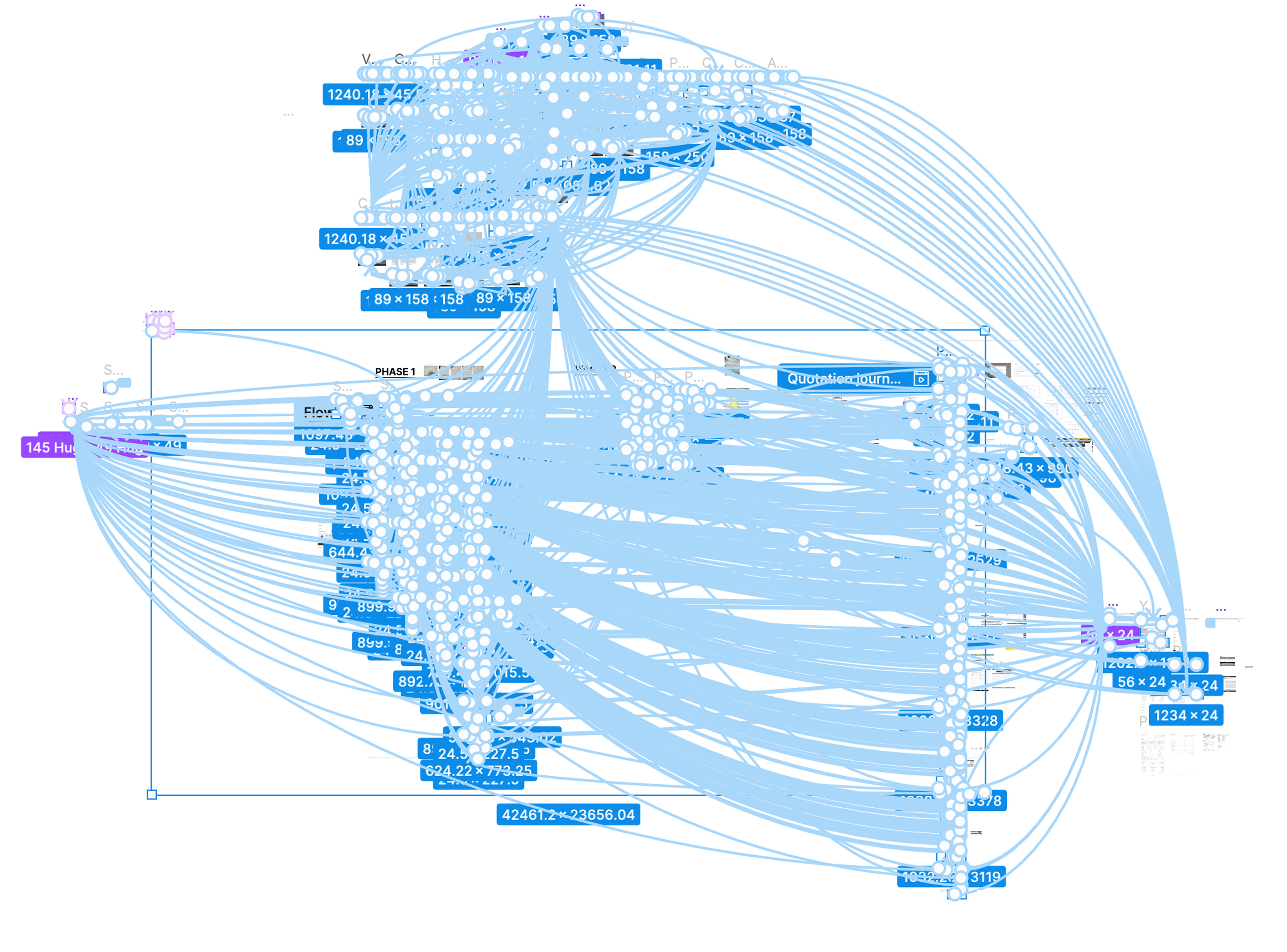While working on the design for both the main site and quote system, the complexity grew significantly as can be seen by the screenshot of the wireframe prototype below (see below). To keep things focused, I'll be highlighting a few key features that were central to the user experience.